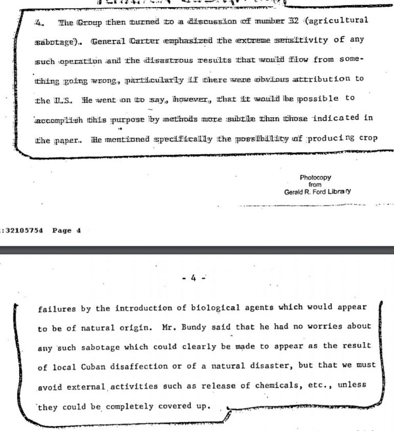 In the minutes of a meeting for Operation Mongoose, the group discussed using ‘agricultural sabotage’ to terrorize the Cuban people and effectively starve an entire country. While the CIA expressed concern over the operation, the concern was not about innocent human lives, only about getting caught.