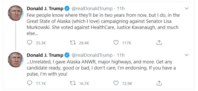 President Trump Hammers Lisa Murkowski After Joe Miller Tweets @realDonaldTrump