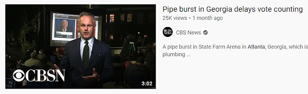 CBS reported “A water pipe has broken in State Farm Arena… this is Georgia’s most populous county and now counting [of absentee ballots] has stopped.”